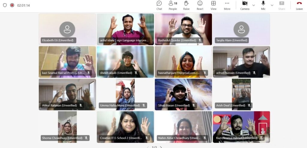 Access Bangladesh offered a simple yet powerful solution: a professional sign language interpreter would attend every online class and translate each lesson in real time. This would give learners full communication access while allowing trainers to teach as usual. After thoughtful planning and several discussions, Creative IT agreed to pilot the model.